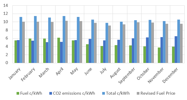 The Weighted Average Fuel Price reflects the cost of the fuel purchases, the cost of greenhouse gas (CO2) emissions and the cost of preserving strategic fuel reserves. It is the sum of the purchase cost of the fuel consumed during the previous month, the cost of the greenhouse emission rights required and the charges of the Cyprus Organisation for Storage and Management of Oil Stocks (COSMOS).