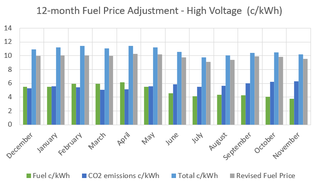 The cost of Electricity Generation at the Basic Fuel Price and the Fuel Adjustment are charged separately in the electricity bill.